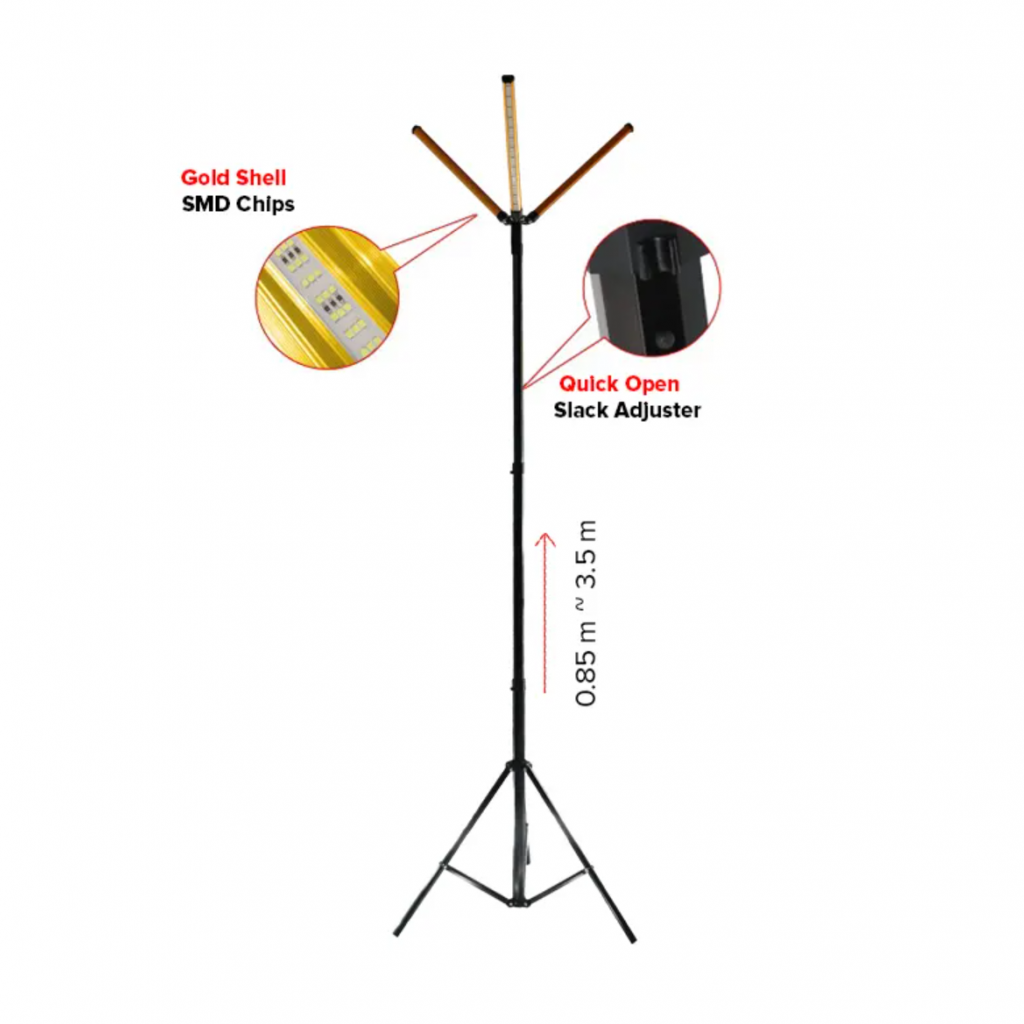 هنگام قرار گرفتن آن در ارتفاع، میتواند یک محوطه بزرگ مانند یک تپه را به صورت کامل روشن کند. VIP-15 یک پایه تلسکوپی از جنس آلیاژ آلومینیوم مقاوم دارد که میتوان ارتفاع آن را از 0.85 متر تا 3.5 متر مطابق با نیاز خود تنظیم کرد.