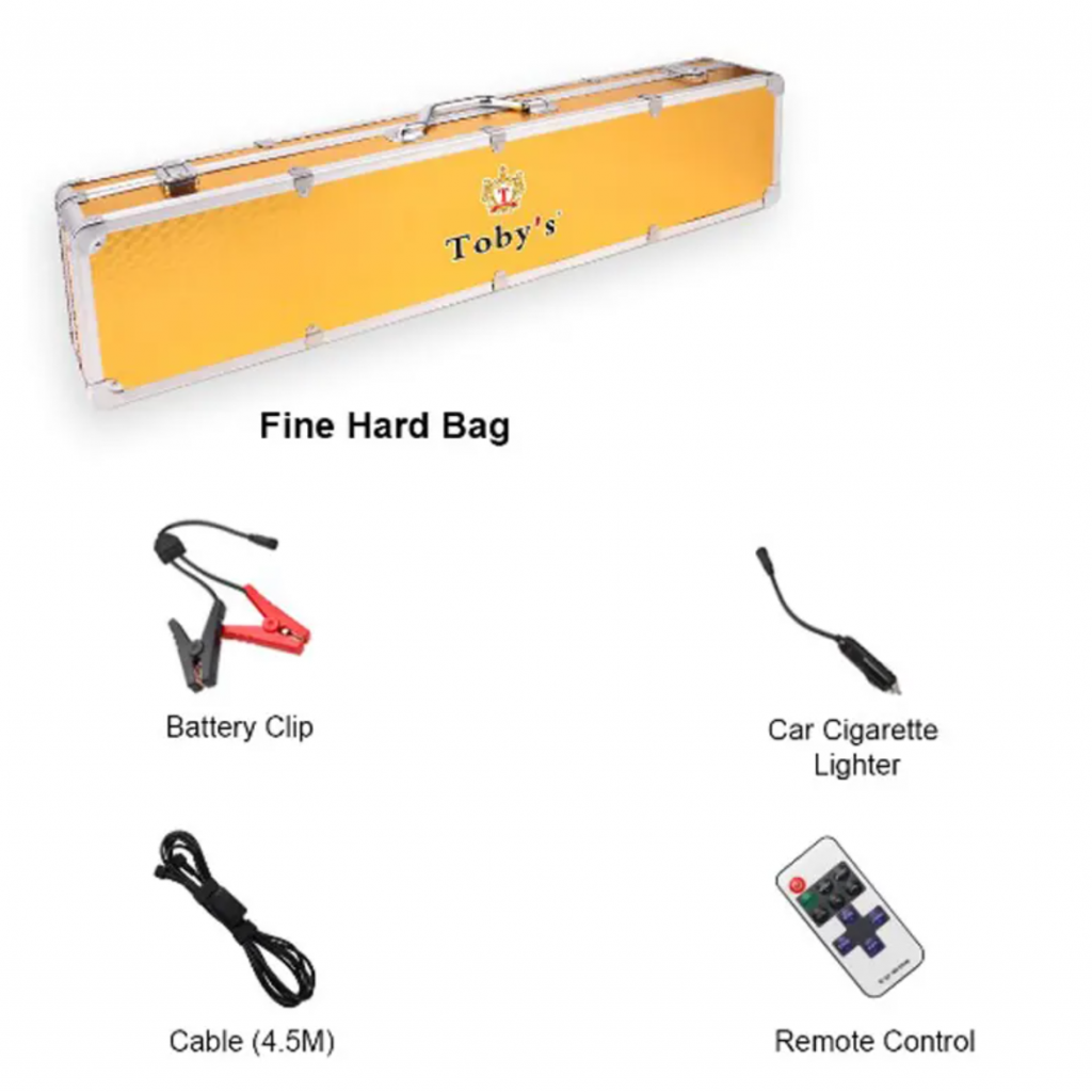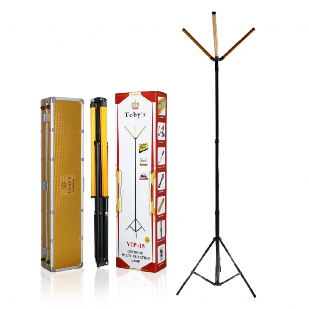 این محصول یک مجموعه چراغ کمپ کامل است که در هاردکیس مخصوص خود، سه عدد پنل نوری در ابعاد 40×2.8 سانتی متر دارد که هر پنل دارای 117 لامپ SMD میباشد.چراغ TOBY’S با قدرت 120 وات، دارای نور سفید مهتابی با دمای رنگ 6000K است که طول عمری مساوی با 50000 ساعت دارد.