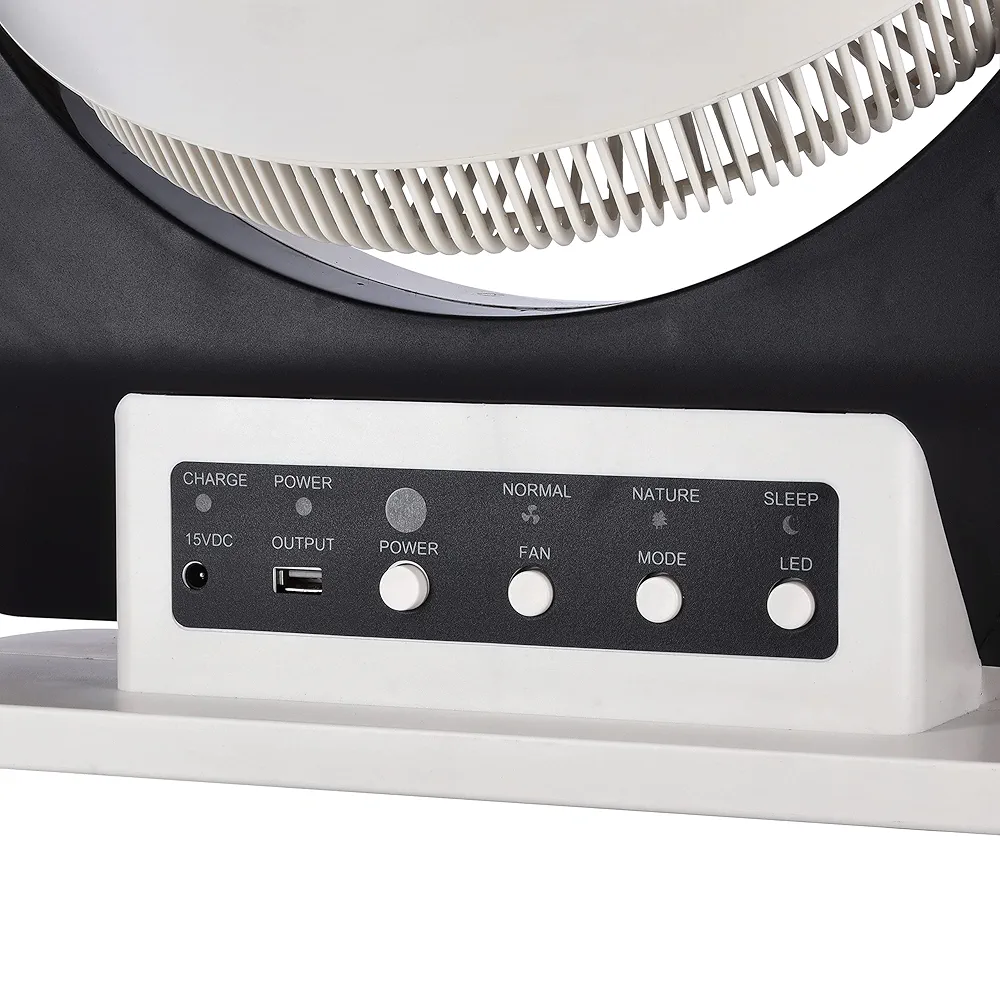 و گزینههای مختلفی برای منبع تغذیه ارائه میدهد: میتوانید از کابل USB معمولی برای روشن کردن پنکه استفاده کنید. همچنین، میتوان از آداپتور تلفن همراه برای شارژ باتری پنکه استفاده کرد. میتوانید پنکه را به روشی که تلفن هوشمند و کابل شارژ USB خود را شارژ میکنید، شارژ کنید، که با شارژر USB، لپتاپ، پاوربانک و سایر دستگاههای دارای USB کار میکند و میتواند توسط آن شارژ شود. یا فقط از منبع تغذیه باتری استفاده کنید. باتری قابل شارژ قدرتمند 7 آمپر ساعتی، میتواند به مدت 10 ساعت با سرعت کم بدون هیچ مشکلی و با بالاترین سرعت به مدت 4 ساعت کار کند.