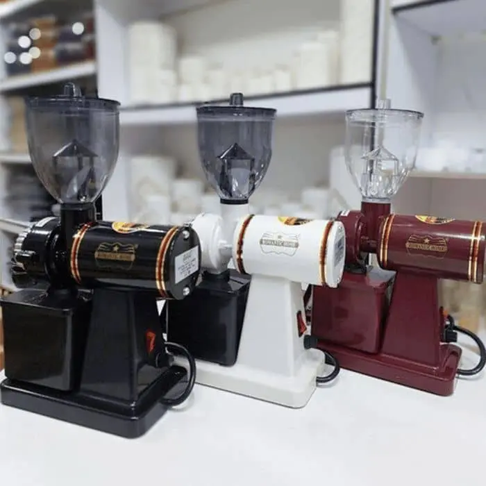 آسیاب قهوه برقی دارای مخزن کوچکی برای قهوه های آسیاب شده است که قهوه ها بعد از آسیاب شدن درون آن ریخته شده و از هدر رفتن پودر جلوگیری می شود.