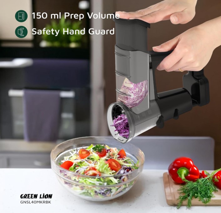 سالادساز گرین لاین: اساساً، این دستگاه سبزیجات و میوهها را بدون دردسر زیاد برش میدهد، خرد میکند و رنده میکند. تیغهها از نوع استیل ضد زنگ 420J2 هستند، میدانید، از نوع بسیار مقاومی که تقریباً برای همیشه تیز میماند. آنها آن را با استفاده از پلاستیکهای سنگین مانند ABS و PC، به همراه قطعات سیلیکونی که به راحتی ترک نمیخورند، ساختهاند.