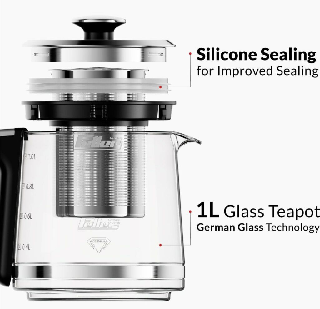 چای ساز فلر TS 490 دارای ظرفیت 1.7 لیتر برای کتری و 1 لیتر برای قوری است که به کاربران اجازه میدهد تا در هر بار استفاده چای یا دمنوش زیادی تهیه کنند. این ظرفیت بالا به خصوص برای مهمانیها یا خانوادههای پرجمعیت بسیار کارآمد است و نیازی به جوشاندن مکرر آب نیست. توان 2200 وات این دستگاه، امکان به جوش آوردن سریع آب را فراهم میآورد، به طوری که شما میتوانید به سرعت به یک فنجان چای خوشمزه دست پیدا کنید.