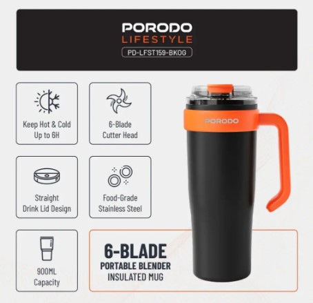 تیغه 6 پره استیل ضد زنگ 304 مخصوص مواد غذایی، علاوه بر دوام بالا، توانایی خرد کردن میوهها و حتی یخهای کوچک را دارد. ظرفیت 900 میلیلیتر این دستگاه نیز آن را برای تهیه نوشیدنیهای پرحجم بسیار کاربردی کرده است. از طرفی قابلیت نگهداری دما تا 5 الی 6 ساعت باعث میشود نوشیدنی شما برای مدت طولانی گرم یا سرد باقی بماند.