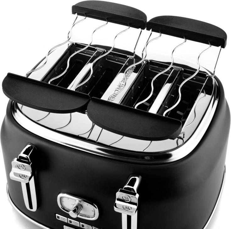 توستر یکپارچه سازی با سیستم عامل WKTTB809 وستینگهاوس با ظرفیت 4 برش با گریل گرم کننده ایده آل برای انواع باگت، ساندویچ و کروسان است. علاوه بر این، دارای 4 تنظیمات با دکمه های نورانی، کنترل برنزه متغیر، برای تنظیم برنزه شدن است.