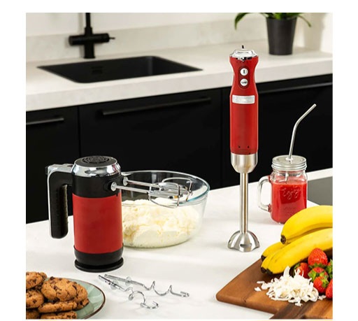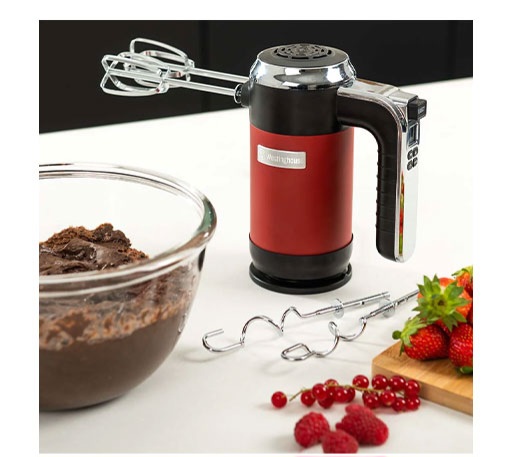 این همزن دستی قرمز به لطف طراحی شیک یکپارچه سازی با سیستم عامل،یک دارایی زیبایی شناختی برای پیشخوان یا میز ناهار خوری است.