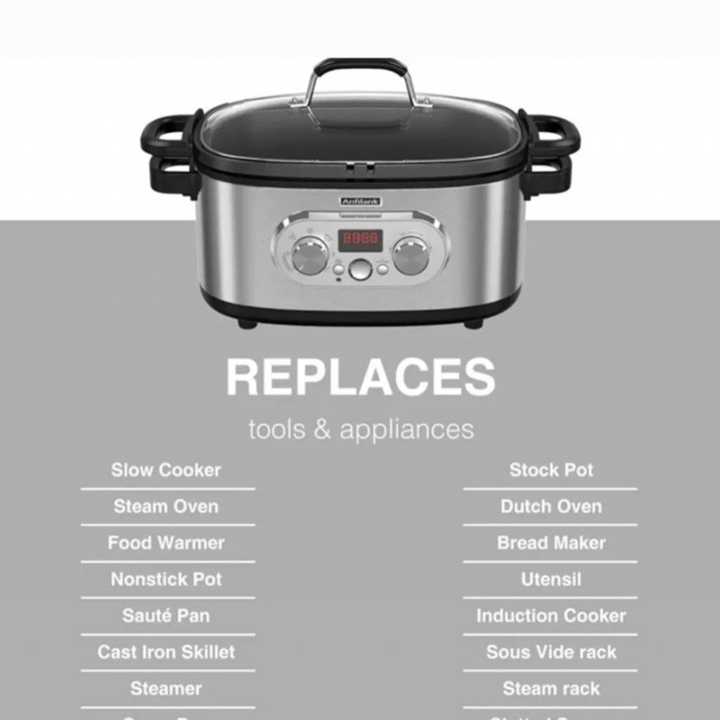 قابلیت پخت چندگانه: این قابلمه قابلیت پخت آهسته، بخارپز، خورش، پخت، برشته کردن، پختن برنج و سرخ کردن عمیق را دارد و به شما کمک می کند تا انواع مختلفی از ظروف را به راحتی و انعطاف پذیری درست کنید.