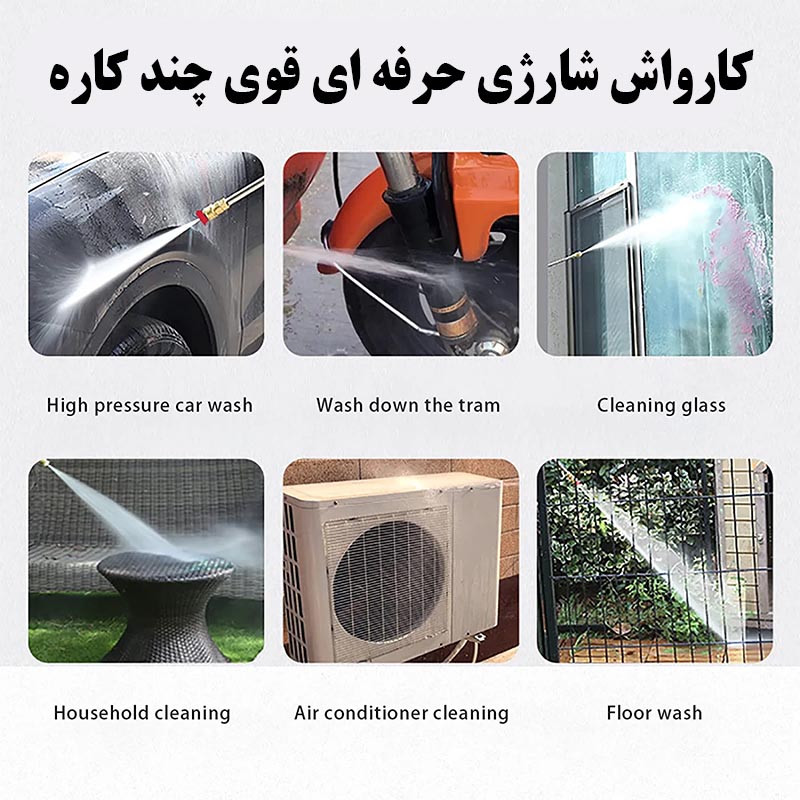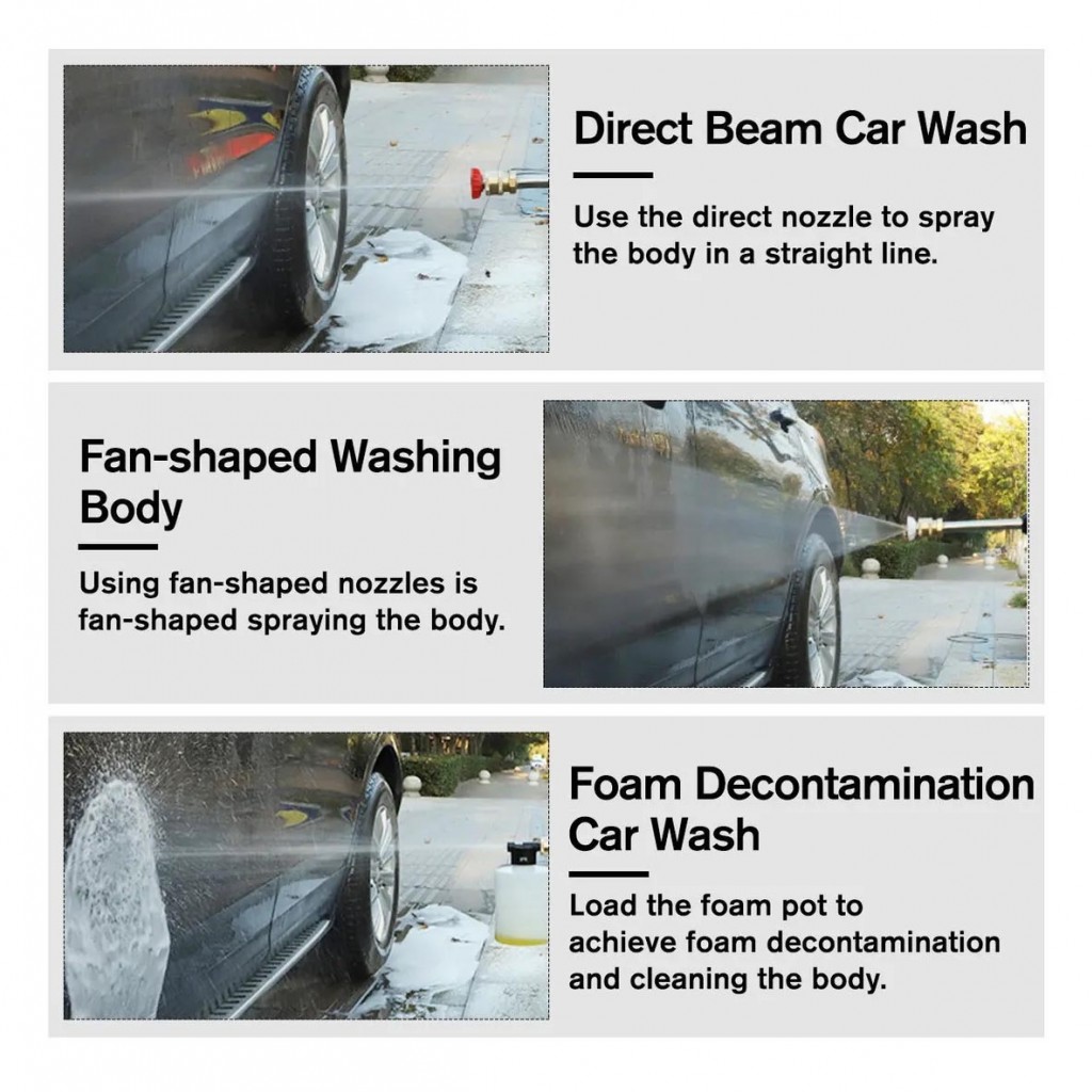 از این محصول می توان برای شستشوی ماشین و دوچرخه و موتورسیکلت، آبیاری باغچه ، شستشوی پت خانگی ، شستشو با کف، نظافت حیاط و سنگ فرش، نظافت داخل قطعات و رادیاتور و … استفاده نمود.