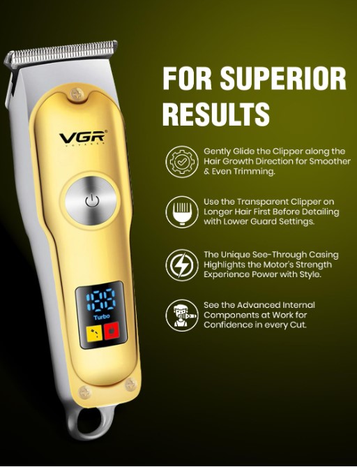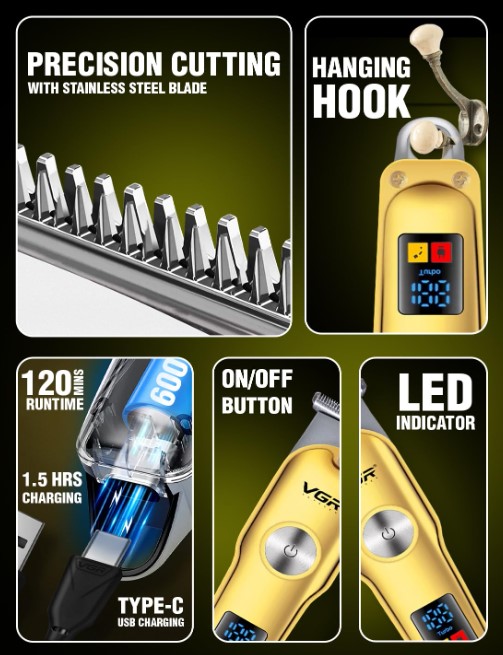 ماشین اصلاح موی سر و صورت وی جی ار مدل V-290، ترکیبی از طراحی مدرن و عملکرد حرفهای است که تجربهای بینظیر از اصلاح را برای کاربران فراهم میکند. این دستگاه با تیغههای T شکل از جنس استیل ضد زنگ، امکان اصلاح دقیق و بدون آسیب به پوست را فراهم میسازد. باتری لیتیومی قدرتمند آن با ظرفیت 600 میلیآمپر، با شارژ کامل در 90 دقیقه، تا 120 دقیقه استفاده مداوم را فراهم میکند. نمایشگر دیجیتال LED نیز اطلاعاتی مانند میزان شارژ و نیاز به روغنکاری را به کاربر نمایش میدهد.