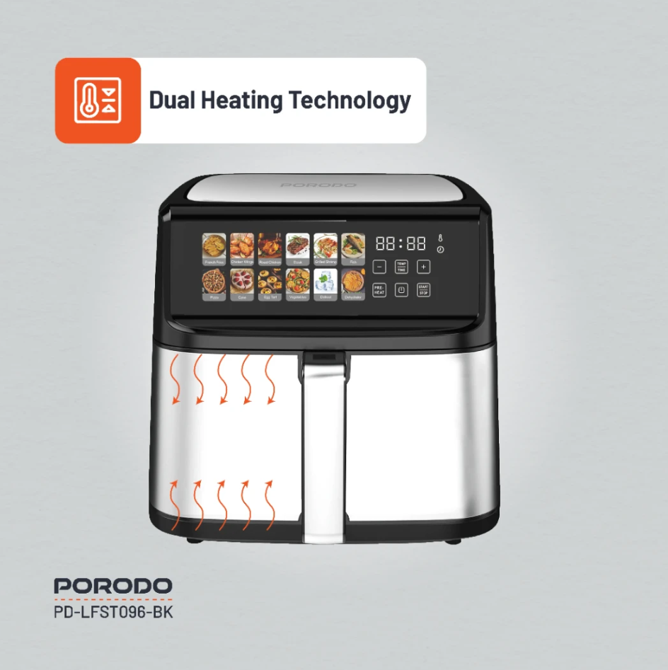 با معرفی سرخکن هوای Porodo Lifestyle با ظرفیت بالا، میتوانید بدون روغن غذاهای سالم بپزید. این سرخکن دارای فناوری گرمایش دوگانه است که به پختوپز خوب کمک میکند. این سرخکن با موتور پرقدرت ۲۲۰۰ وات و محدوده دمایی بین ۶۰ تا ۲۰۰ درجه سانتیگراد کار میکند و هر بار نتایج ترد و خوشمزهای ارائه میدهد. یکی دیگر از ویژگیهای چشمگیر آن، ظرفیت ۱۱ لیتری آن است که آن را برای وعدههای غذایی خانوادگی مناسب میکند و از پنلهای لمسی برای کنترل آسان تنظیمات استفاده میکند. تمیز کردن آسان آن با قابلمه و سینی غیرچسبنده همراه است، در حالی که سیستم خاموش شدن خودکار، ایمنی را افزایش میدهد. این سرخکن از طریق یک دوشاخه ۳ پین بریتانیایی کار میکند و این سرخکن هوا برای آشپزی آسان، یک وسیله ضروری در آشپزخانه مدرن شماست.