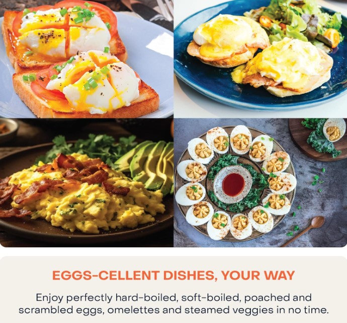 یک دستگاه جمعوجور و سریع برای پخت انواع تخممرغ با سه حالت پخت مختلف است. با توان مصرفی 360 وات، این دستگاه قادر است تا 7 عدد تخممرغ را در کمترین زمان ممکن به شکلی عالی و با کیفیت آبپز، نیمرو یا املت آماده کند. این دستگاه مخصوصاً برای افرادی که به سرعت نیاز به تخممرغ پخته یا انواع املت دارند، گزینهای مناسب و کارآمد است.