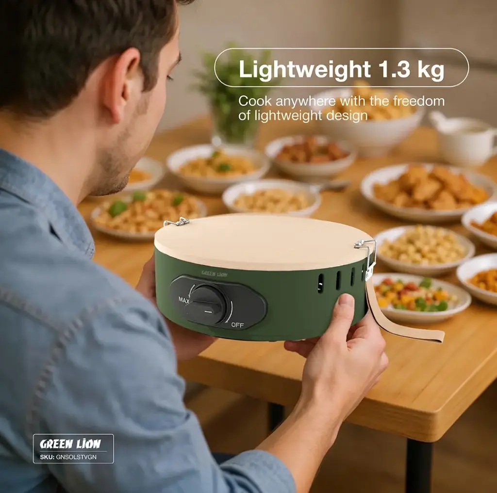 اجاق گاز کمپینگ تک نفره گرین مدل "گرین لاین" همراهی بینظیر برای ماجراجوییهای شما در فضای باز است. این اجاق گاز که از آهن محکم ساخته شده و مجهز به بخاری از جنس استیل ضد زنگ است، 8000 BTU (2.34 کیلووات) گرما تولید میکند و میتواند حداکثر وزن 5 کیلوگرم را تحمل کند.