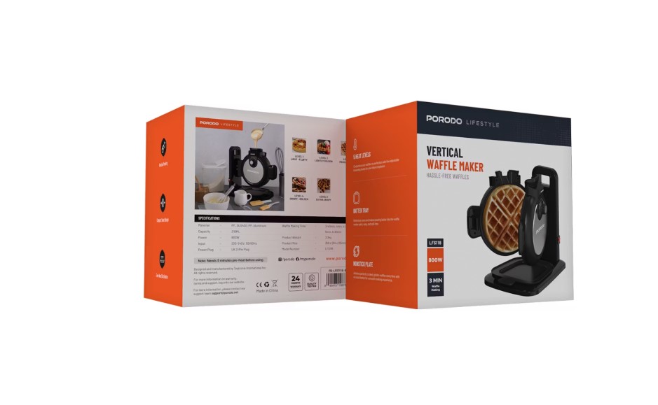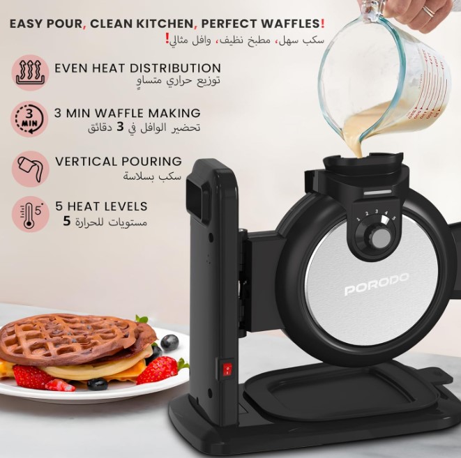 وافل ساز پرودو مدل PORODO VERTICAL WAFFLE MAKER LFS118 انتخابی هوشمندانه برای افرادی است که به دنبال سرعت، کیفیت و طراحی خاص در آشپزخانه هستند. طراحی عمودی این دستگاه نهتنها فضای کمتری اشغال میکند، بلکه مانع از سرریز شدن خمیر میشود و تمیزی بیشتری به همراه دارد.