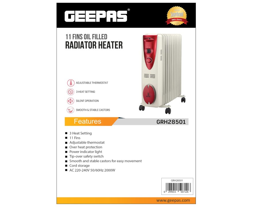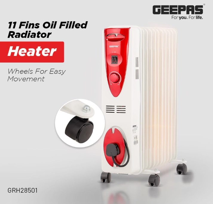 این شوفاژ دارای ۱۱ پره روغنی است که باعث پخش یکنواخت گرما در تمام فضای اتاق میشود. طراحی چرخدار آن، جابهجایی دستگاه را بسیار آسان کرده و وجود محفظهی نگهداری سیم برق هم از بههمریختگی جلوگیری میکند.