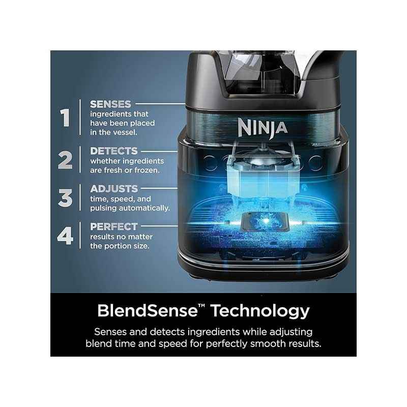 ویژگی برجسته نینجا TB301 فناوری BlendSense™ (تشخیص هوشمند)، اوج قدرت 1800 وات و ترکیب دوکاره (Duo)پارچ بزرگ و دو لیوان تکنفره است.