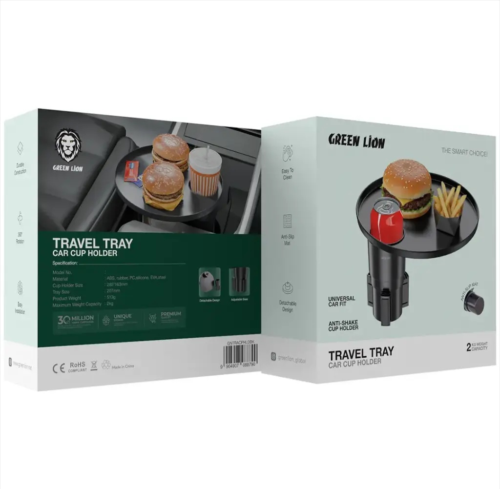 سینی مسافرتی ماشین مدل Black Green Lion با جا لیوانی، نه تنها برای سفرهای طولانی، بلکه برای استفاده روزمره در محل کار نیز یک وسیله ضروری است. این سینی از لایههایی از مواد مختلف، از جمله ABS، لاستیک، PC، سیلیکون، EVA و مقدار کمی فولاد ساخته شده است که ساختاری محکم و قابل اعتماد ایجاد میکند.