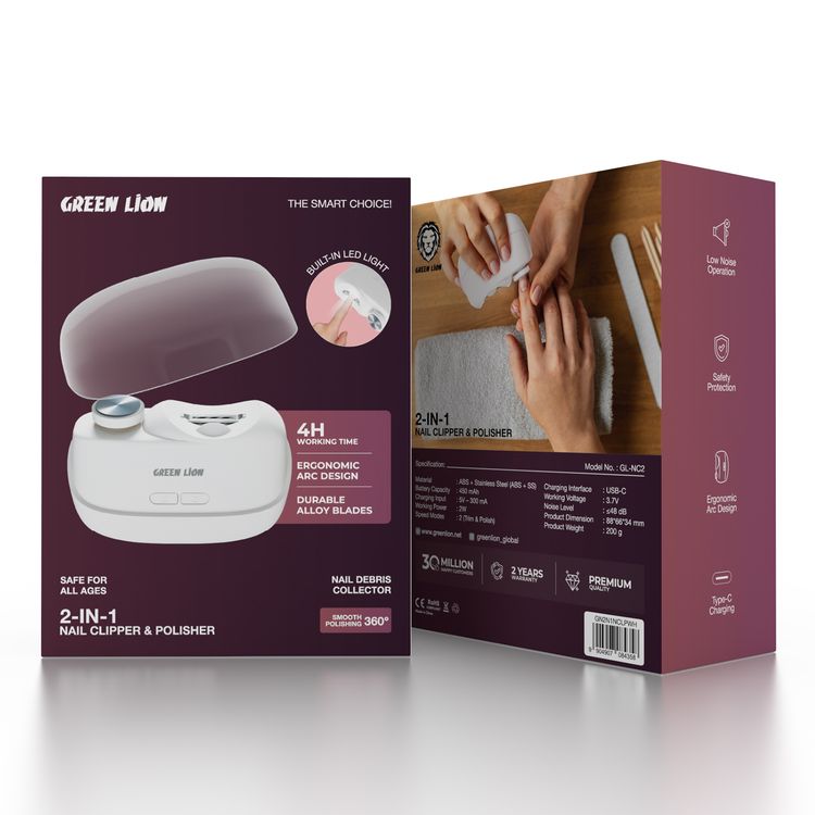 برق دستگاه از طریق USB-C برای راحتی شارژ میشود و دستگاه با محافظت ایمنی برای همه سنین ایمن است. چه در حال کوتاه کردن باشید و چه در حال پولیش، ناخنگیر و پولیش دوکاره گرین لیون، یک تجربهی مراقبت ایمن و دلپذیر از ناخن را تضمین میکند.