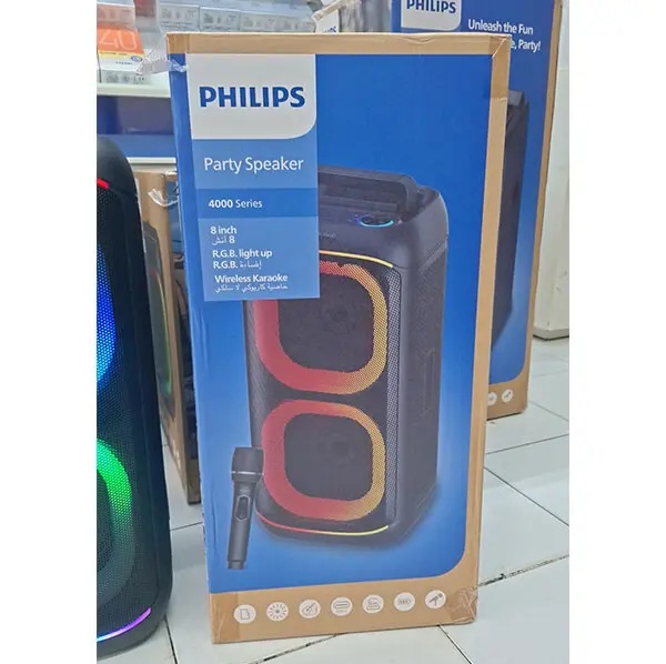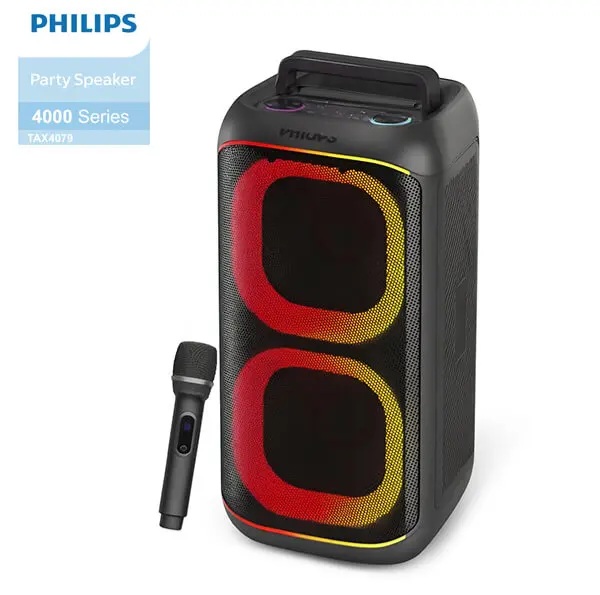 بلندگوی مهمانی بلوتوثی فیلیپس TAX4079 برای ارائه بیس قوی، صدای واضح و تنظیمات کامل کارائوکه بیسیم ساخته شده است. این بلندگو با دو درایور ۸ اینچی، پخش بلوتوث و یک میکروفون بیسیم قابل شارژ، برای مهمانیها، سرگرمیهای خانگی و رویدادهای فضای باز در سراسر سریلانکا ایدهآل است. ساخت محکم، نورپردازی LED روشن و عمر باتری طولانی آن را به انتخابی مطمئن برای کاربرانی تبدیل میکند که صدای قدرتمندی را در یک سیستم قابل حمل میخواهند.