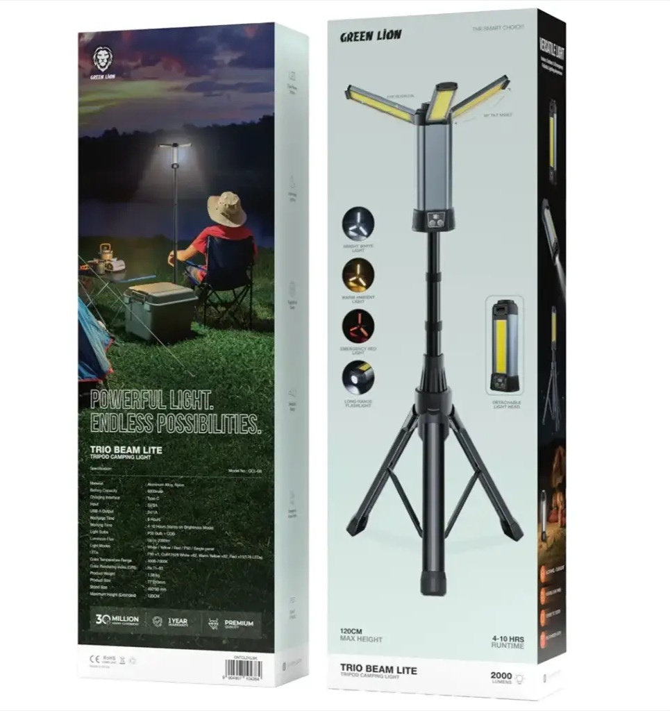 چراغ کمپینگ پایه دار شارژی گرین لاین Green Lion Trio Beam Lite Tripod Camping Light