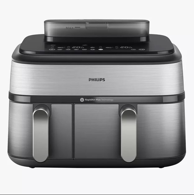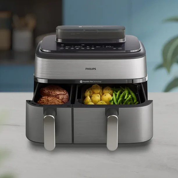 شرکت سازنده فیلیپس برای این محصول گزینه پخت همزمان در نظر گرفته که زمان پخت را به صورت خودکار در هر دو سبد همگام می کند. بنابراین اگر دو غذای مختلف به دو زمان پخت متفاوت نیاز دارند، می توانید همزمان پخت و پز را تمام کنید.