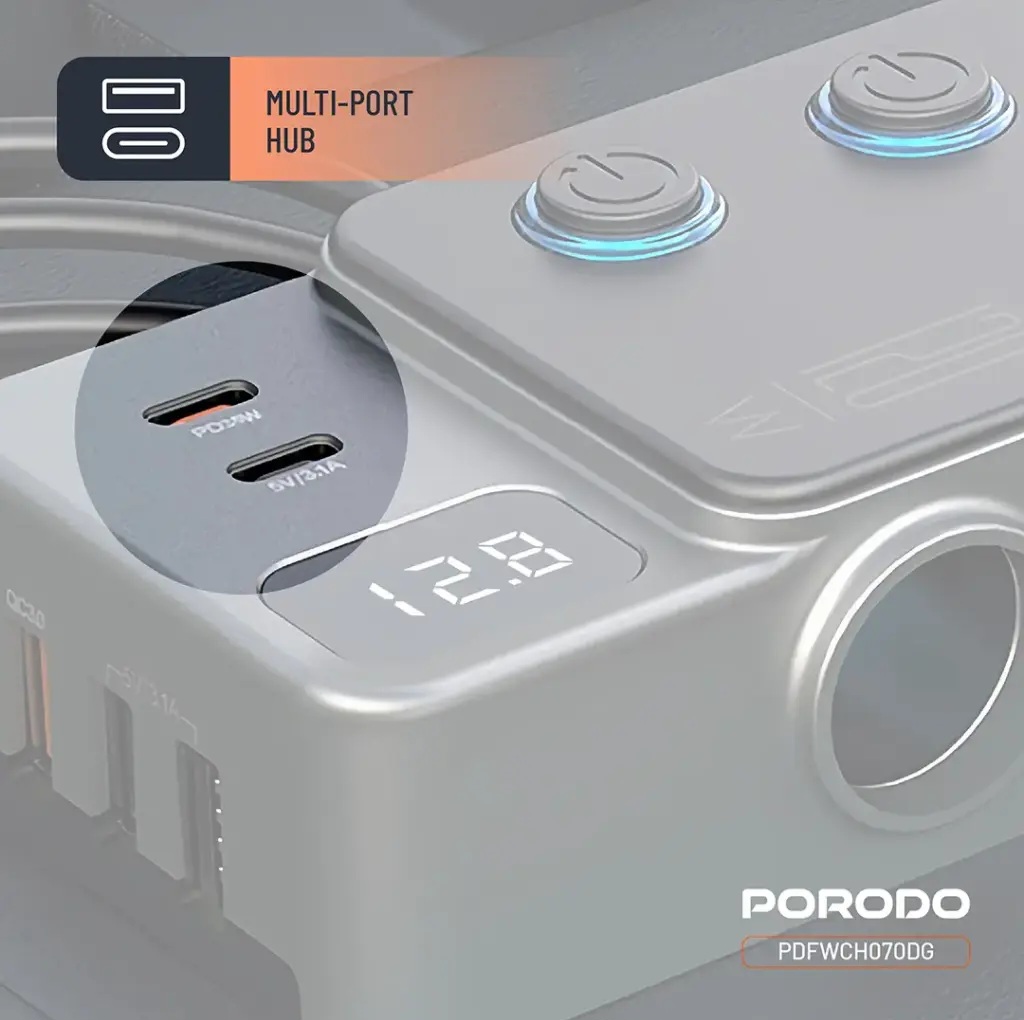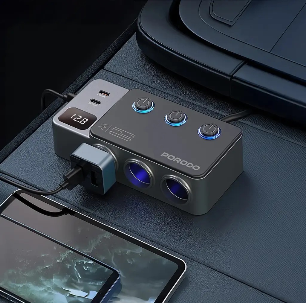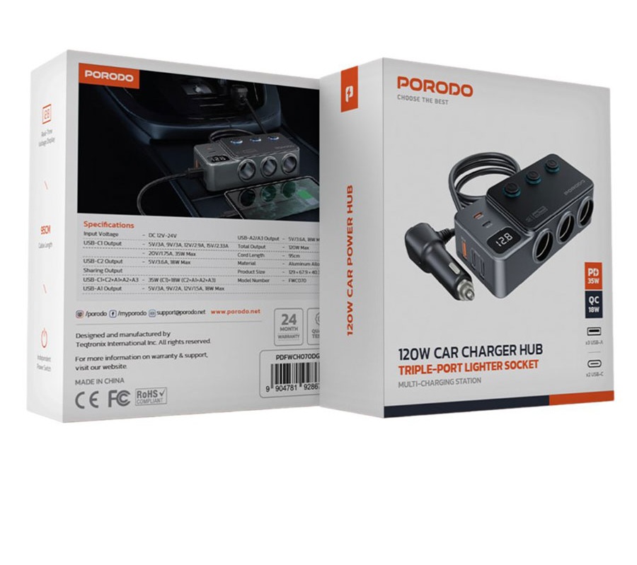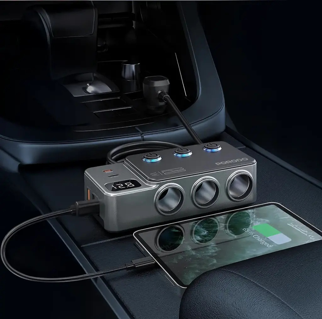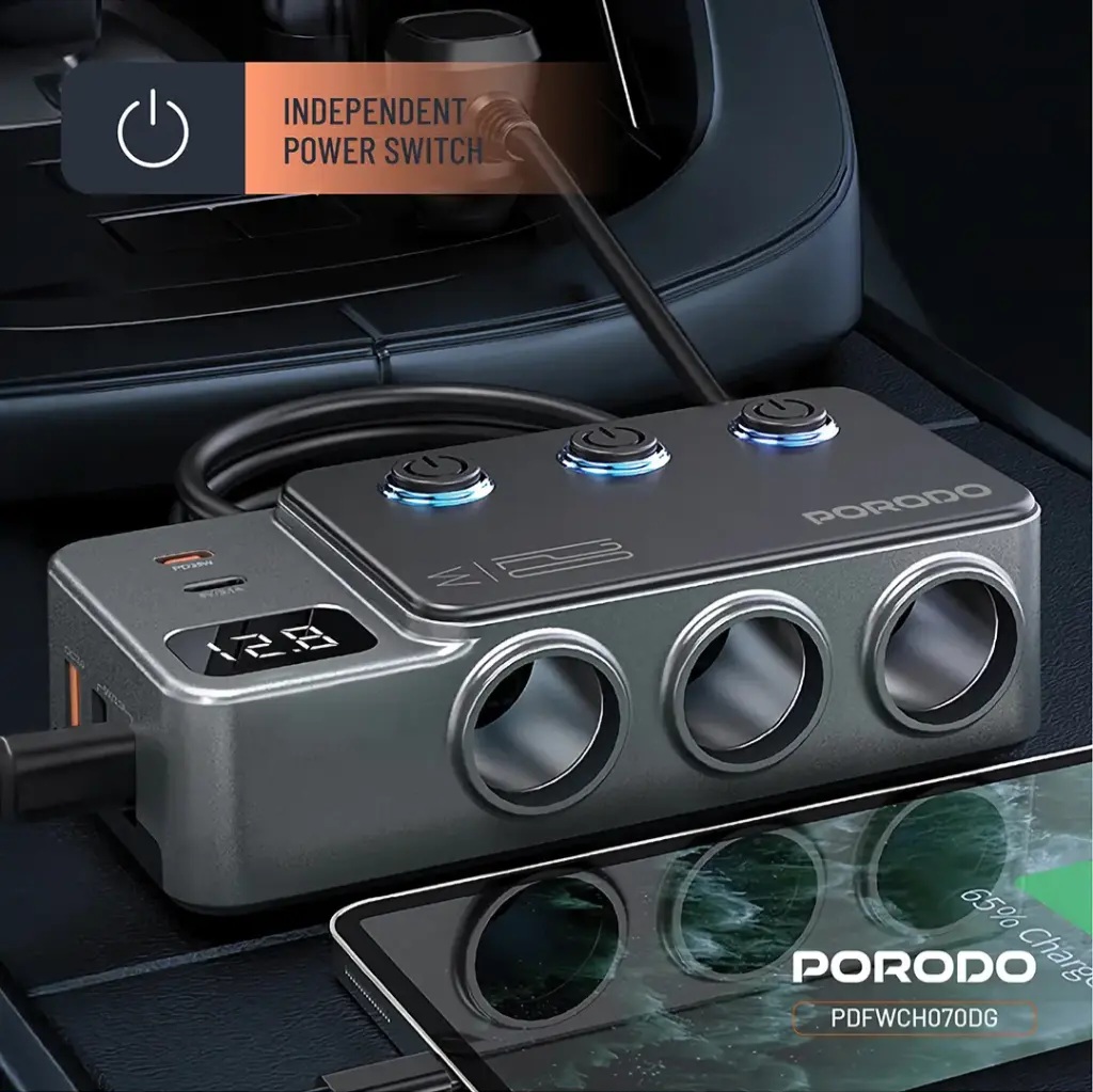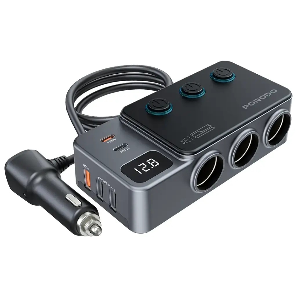 | شارژر فندکی خودرو 120 وات پرودو مدلPorodo 120W Car Charger Hub Triple-Port Lighter Socket PDFWCH070 |
