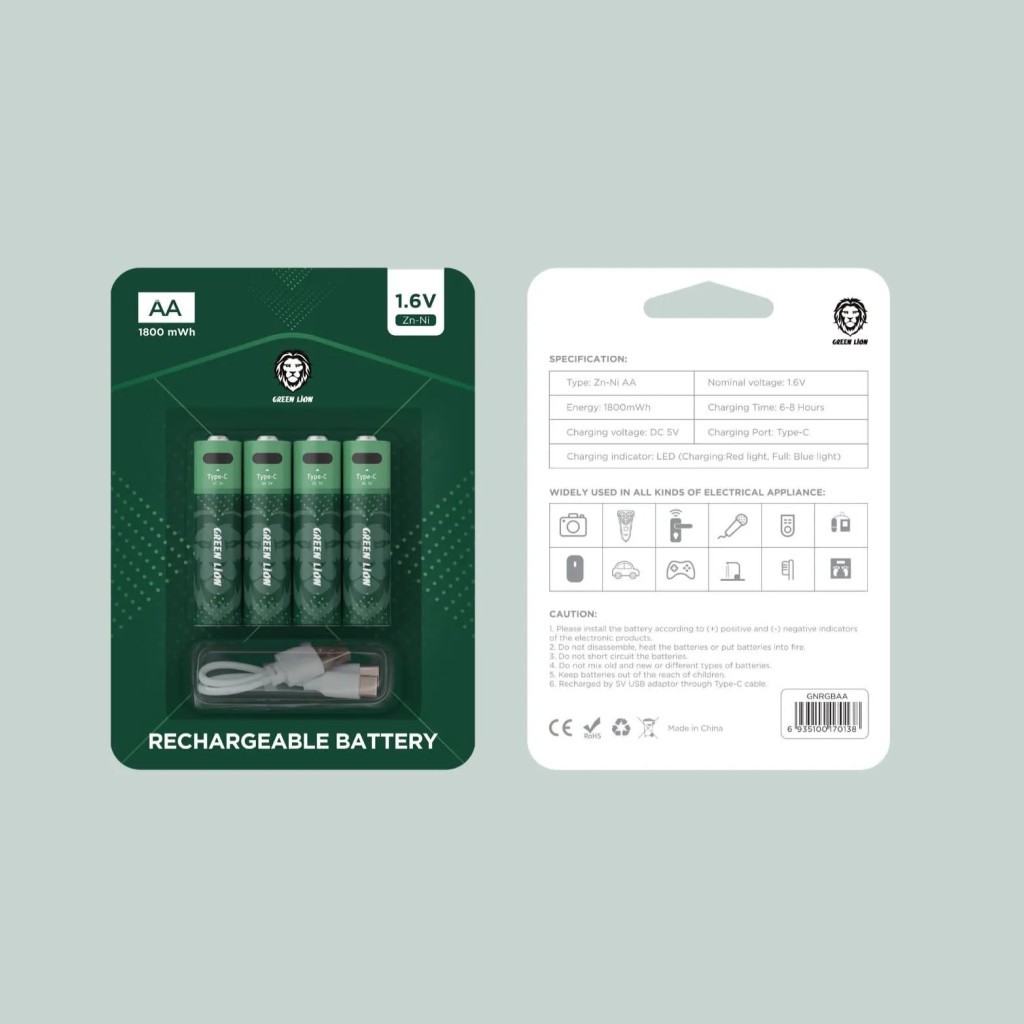 باتری قلمی قابل شارژ گرین لاین مدل Green Lion Rechargeable Battery AA 1800 mWh