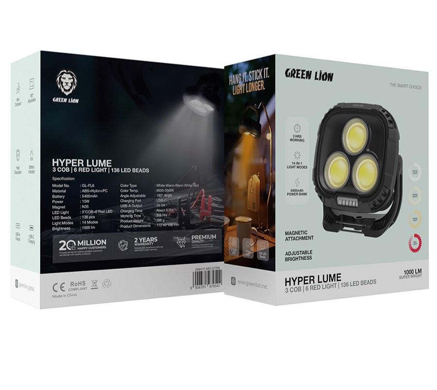 | چراغ کمپینگ 1000 لومن گرین لاین مدل Green Lion Hyper Lume Working Light 1000lm |