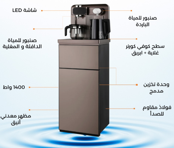 این دستگاه مجهز به یک المنت گرمایشی 1400 واتی بسیار کارآمد است که آب گرم فوری را فراهم میکند. یک کتری استیل ضد زنگ با کیفیت غذایی، نوشیدن ایمن را تضمین میکند و یک صفحه نمایش LED به شما امکان میدهد دمای آب را در زمان واقعی کنترل کنید و آن را با نیازهای خود تنظیم کنید.