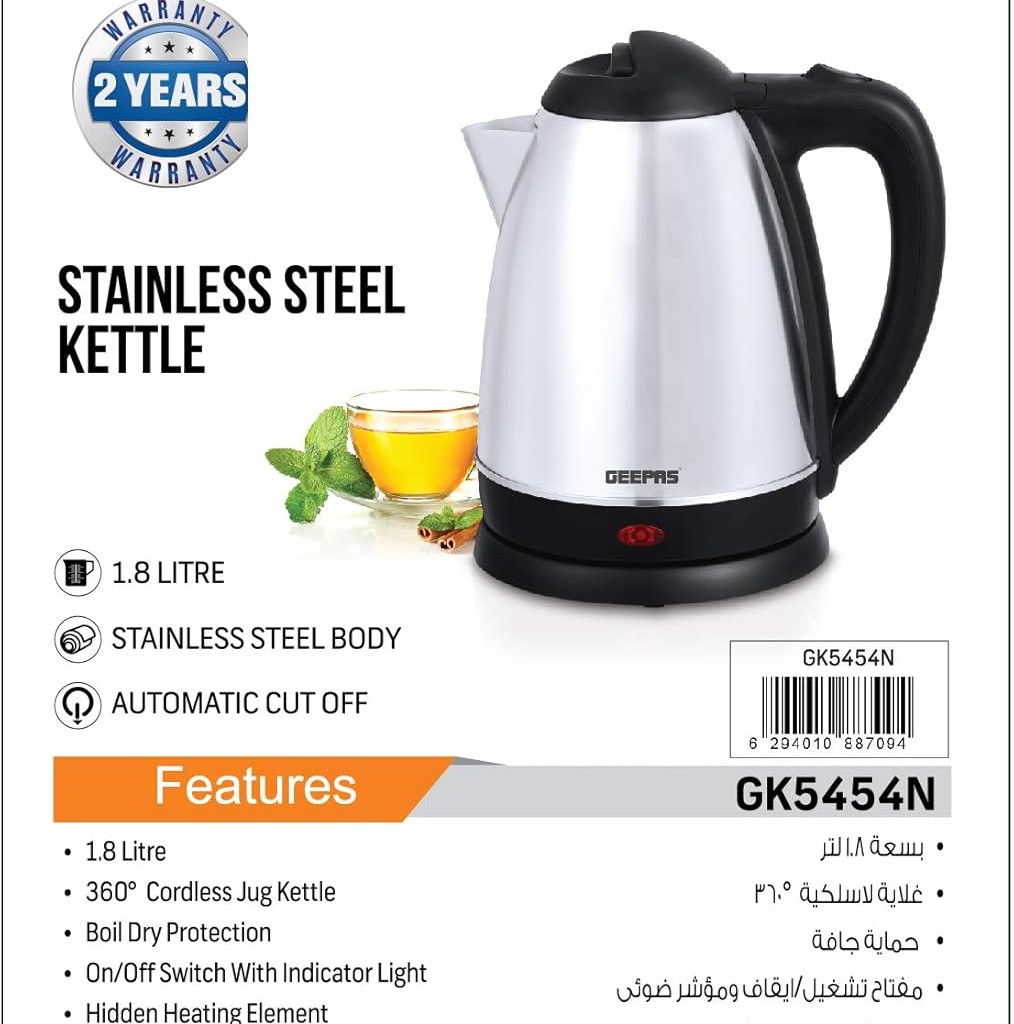 کتری برقی جیپاس قادر به جوش آوردن آب زیر ۳ دقیقه را دارد. این محصول پرکاربرد و اساسی مورد نیاز هر آشپزخانه است که با استفاده از آن می توان آب را به نقطه جوش می رساند. جنس بدنه کتری جوش جیپاس 5454 از استیل بسیار مقاوم به شکل مات بوده که زیبایی محصول را دو چندان نموده. با استفاده از کتری برقی می توانید در مدت زمان کوتاهی انواع نوشیدنی از جمله چای، قهوه، کاپوچینو و … را تهیه نمایید.