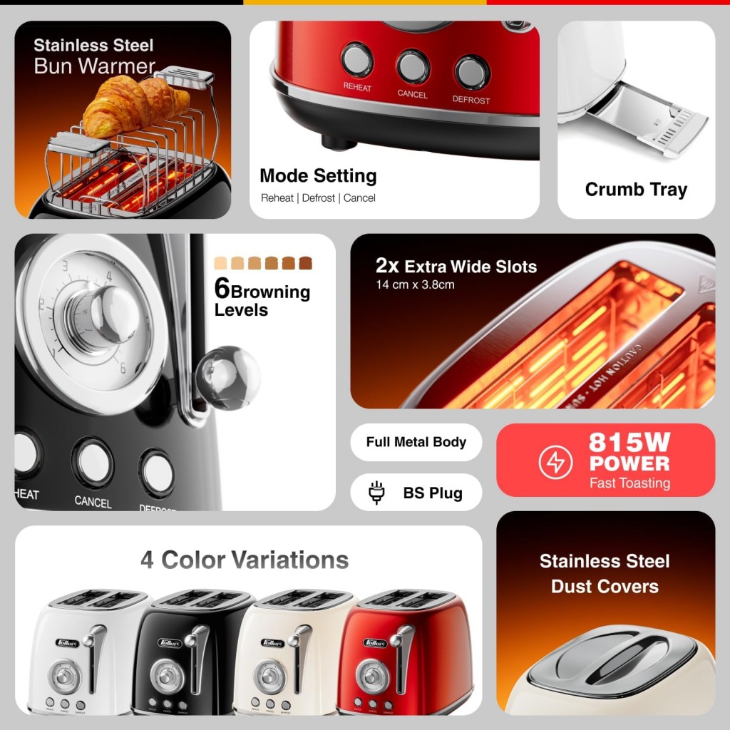 قابلیت قرار گیری نان های حجیم مانند کلوچه و کیک به واسطه داشتن یک استند در بالای خروجی توستر برای این محصول فلر در نظر گرفته شده است.